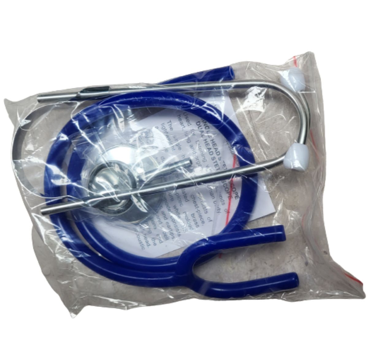 stethoscope is a medical device for listening to the internal sounds of an animal or human body. It typically has a small disc-shaped resonator that is placed against the chest, and two tubes connected to earpieces. It is often used to listen to lung and heart sounds. It is also used to listen to intestines and blood flow in artries and veins In combination with a sphygomanometer it is commonly used for measurements of blood pressure