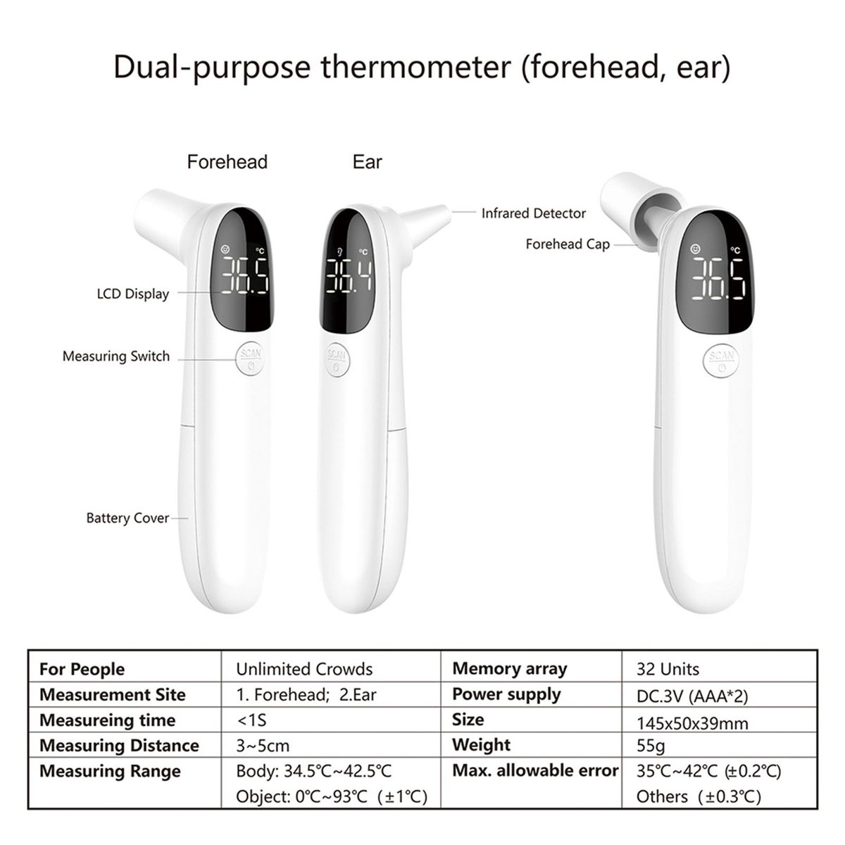 Multifunctional Infrared Thermometer: It aims at the forehead, ear or other measuring objects, press the measure button and the result will be out put in 1 second. High efficiency, no need wait, save your time.