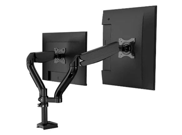 FULL MOTION ADJUSTMENTS - This gas spring dual monitor stand allows your screens to swivel from -90°to +90°, tilt from -55°to +8°and rotate 360°. Conveniently set your monitors at an optimal angle to increase productivity and comfort