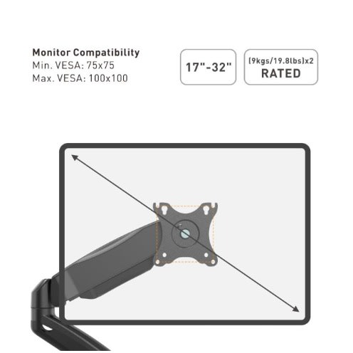 FITS LCD & LED MONITORS: SMAAT Ergonomic monitor arms can handle monitors measuring up to 32 inches for each arm. Ensure display net weight between 2-9kg.