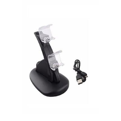 Dual Controller Charging Station for Sony PlayStation 4An ideal charging dock that provides a secure hold for your PS4 controllers and allows you to charge them simultaneously when you're not playing.Features:- Compact and modern charging stand- Easy and quick way to charge 2 controllers simultaneously- Bulit-in LED indicator to show charging status- 5V output with 2*400mA* Joysticks are not included in the packagePackage includes:- 1 x Dual Controller Charging Station- 1 x USB Charging Cable (89cm)This product is compatible with: Sony PlayStation 4 (PS4)