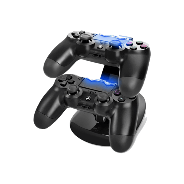 High quality. Design for the PS4 controllers. Two controllers can be charged simultaneously. Sleek and compact design. Powered via the USB ports on for your PS4 or PC. 5V output with 200 to 400 mAH. Full charge can be completed within 2 hours when charging one single controller. Full charge to two controllers simultaneously within 4 hours. Material: PVC. Color: Black
