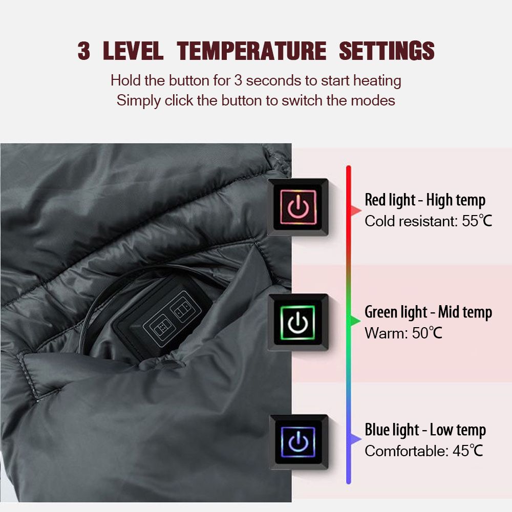 Easy to adjust the heating settings: Low(Blue light)-Medium(Green light)-High(Red light).