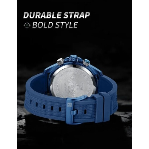 Round industrial-look watch featuring multilayer black dial with white date window and two chronograph subdials48 mm stainless steel case with synthetic sapphire dial windowSwiss quartz movement with analog displayMolded silicone band with buckle closureWater resistant to 100 m (330 ft): In general, suitable for swimming and snorkeling, but not scuba diving
