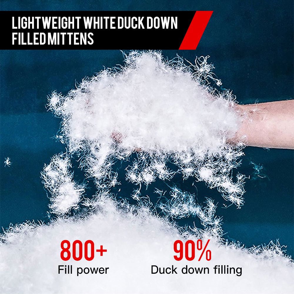 90% duck down filling and soft fleece lining keep your hands warm and comfortable.
