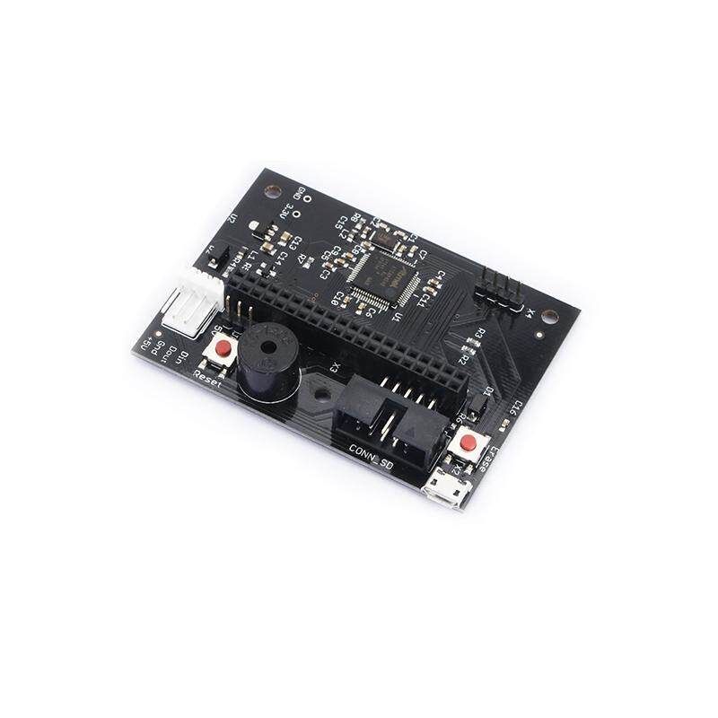 Powerful 32 Bit Processor Dedicated Wifi module Super quiet TMC2660 drivers, up to 256 microstepping. High speed SD card and for a second SD external card if required. Dual extruders on the main board, up to 5 more extruders on the expansion board. High rating: Each driver is capable of 2.8A motor current, currently limited in software to 2.4A. The bed heater is specifically designed for high current (18A). Connect via PC, tablet or smartphone on the same network to the on board web interface. Setup your printer and update the through the web interface. All common 3D printer geometries are supported Expandable up to 7 extruders with for mixing nozzles and remapping axes to use high external drivers. for the PanelDue: a full colour graphic touch screen Provided with Molex compatible plugs and crimps as well as ferrules for and heater terminals.