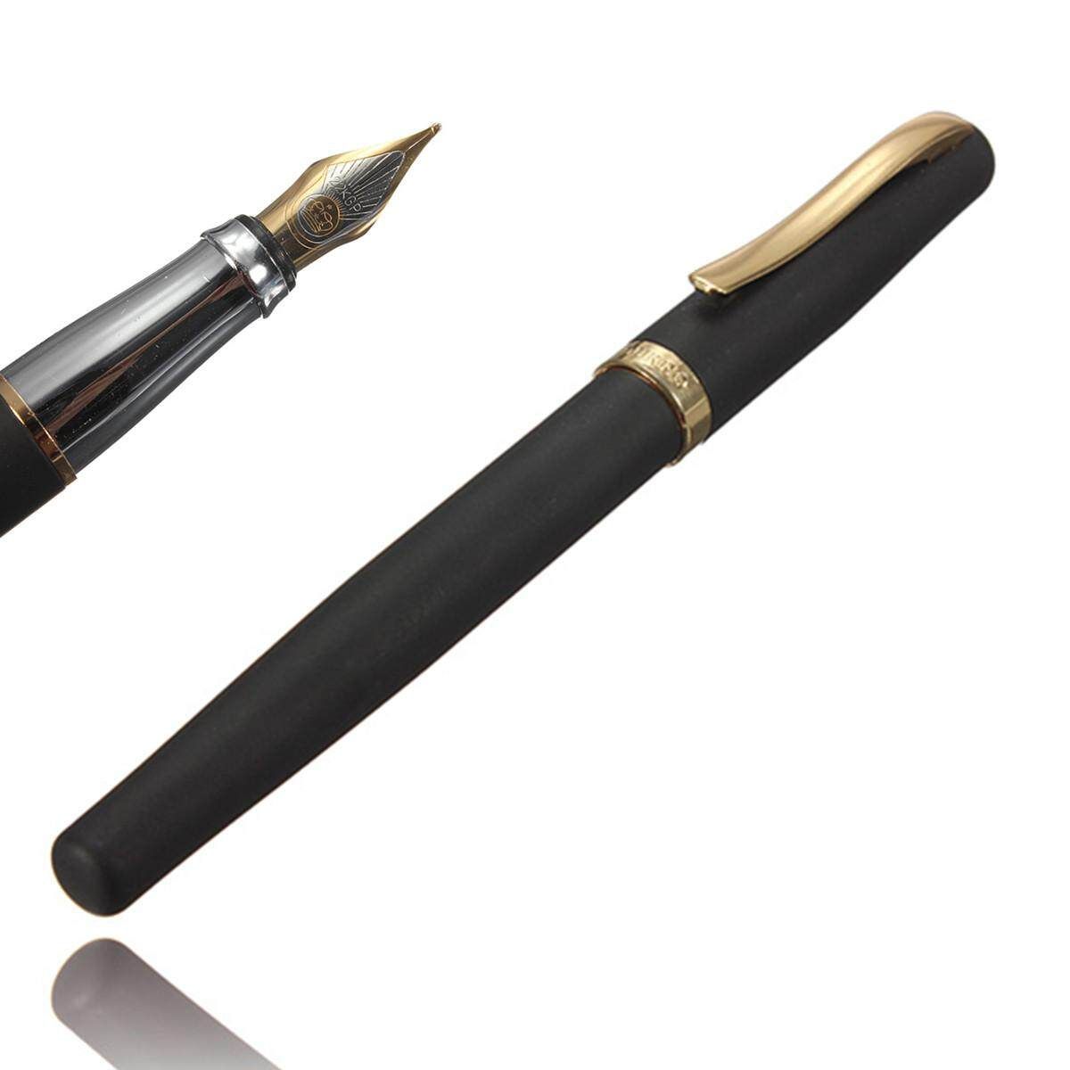 2.Details: Matte black barrel with gold trim, classics of style and recyclable Material, gold clip,snap on cap