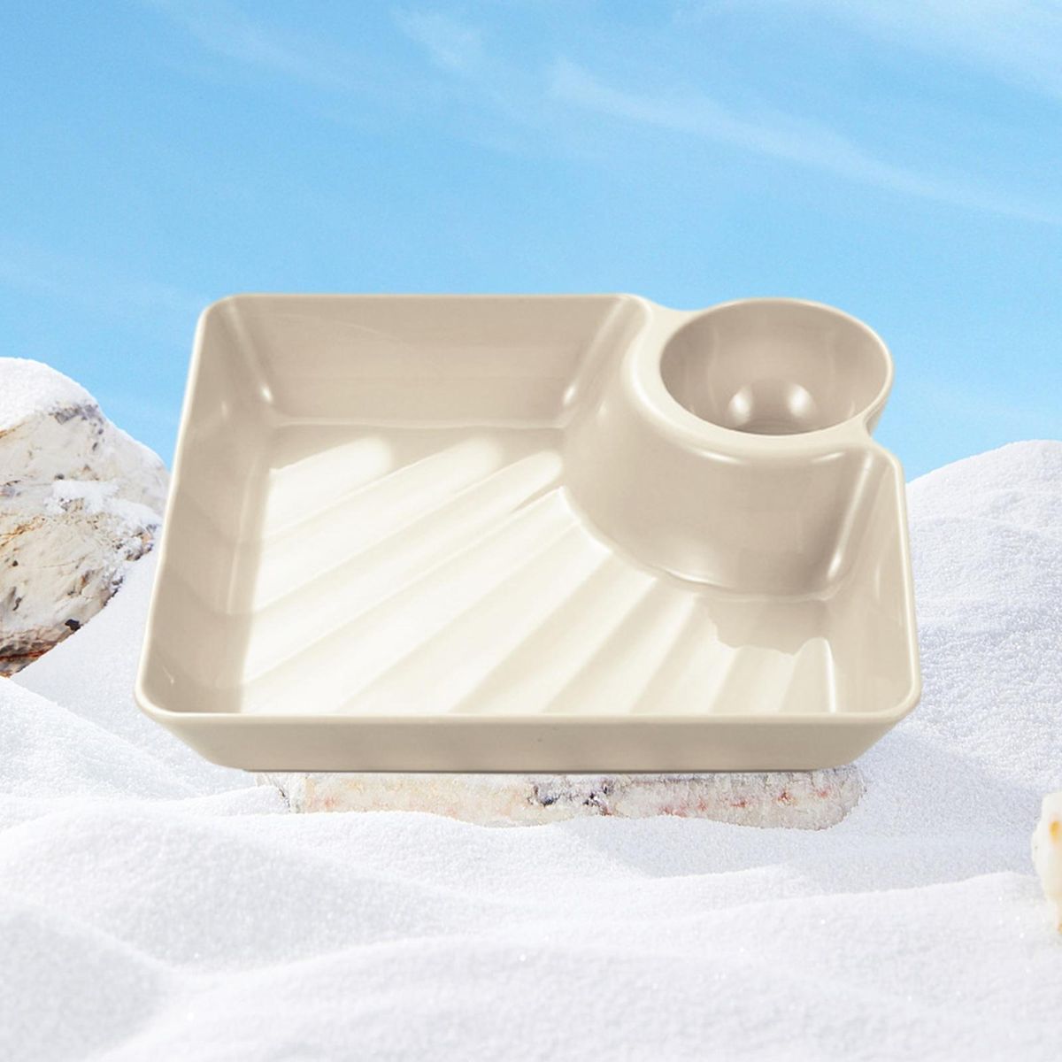 No more hassle of using separate bowls for sauces! our tray features a convenient area where you can store your favorite sauces directly. this saves you time and effort, enhancing your snacking experience with efficiency and enjoyment.