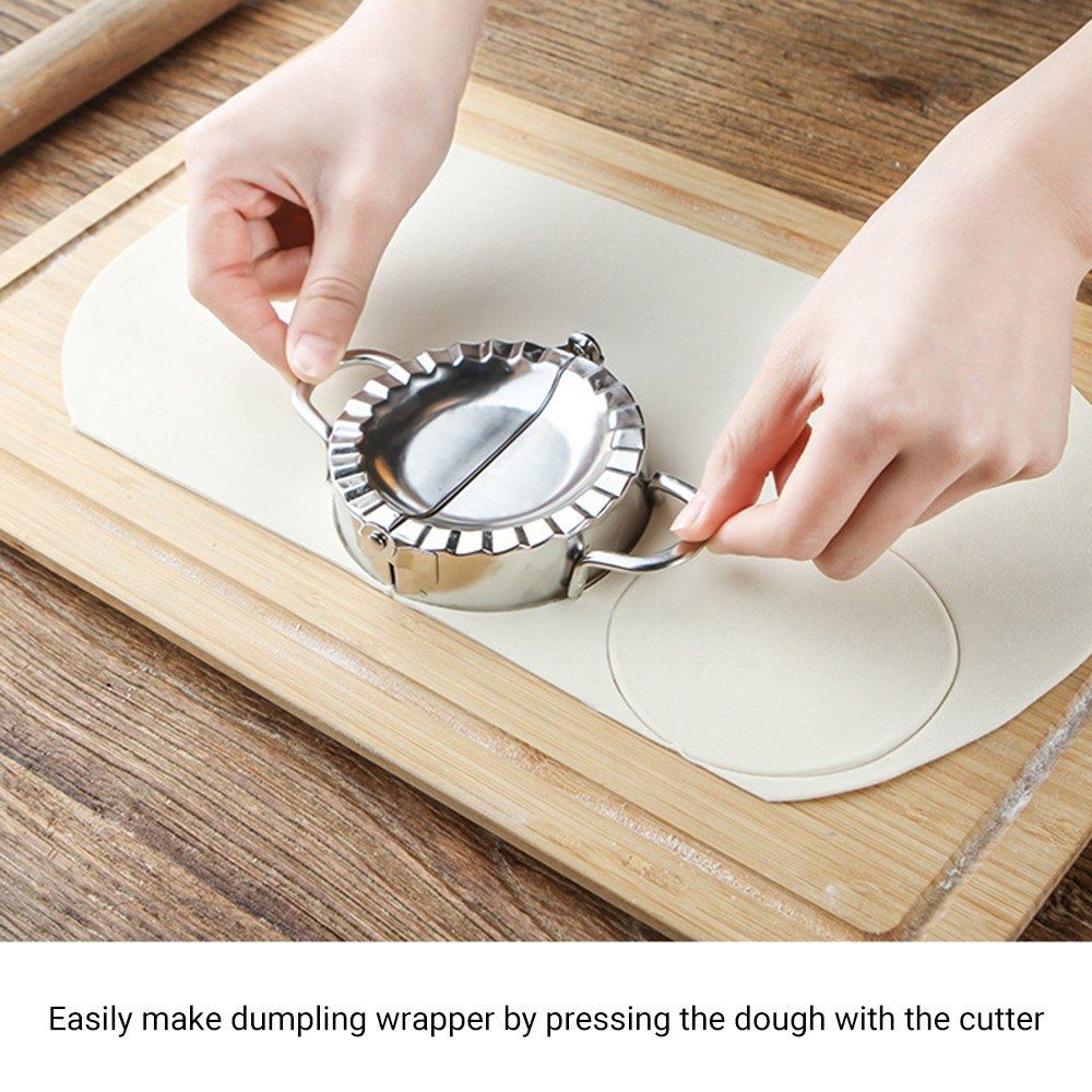 The back of the mold can be used to cut the dough into round dumpling wrappers.