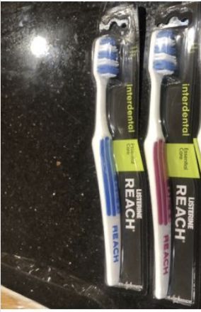 Listerine Reach toothbrush is a DUO pack with multi level bristles to clean thoroughly between the teeth. Angle neck for easy reach and soft rubber grip for better comfort and control