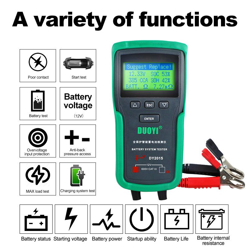 1X DUOYI DY2015 12V Auto Battery Load Tester Tools 100-1700CCA Load Tester Automotive Alternator Tester Digital Battery Analyzer