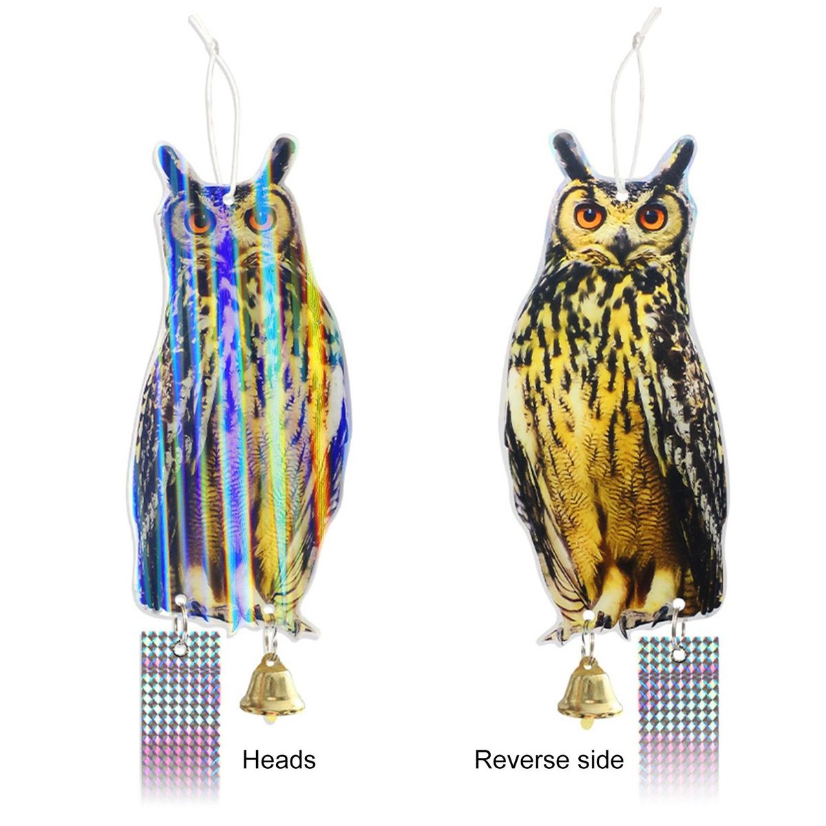 Our bird repellent pendant, the perfect solution to keep birds away from your crops, windows, boats, cars, swimming pools, and gardens. this owl-shaped bird reflection disc can be easily rotated 360 degrees, creating a realistic and effective deterrent for woodpeckers, pigeons, ducks, herons, geese, and more.