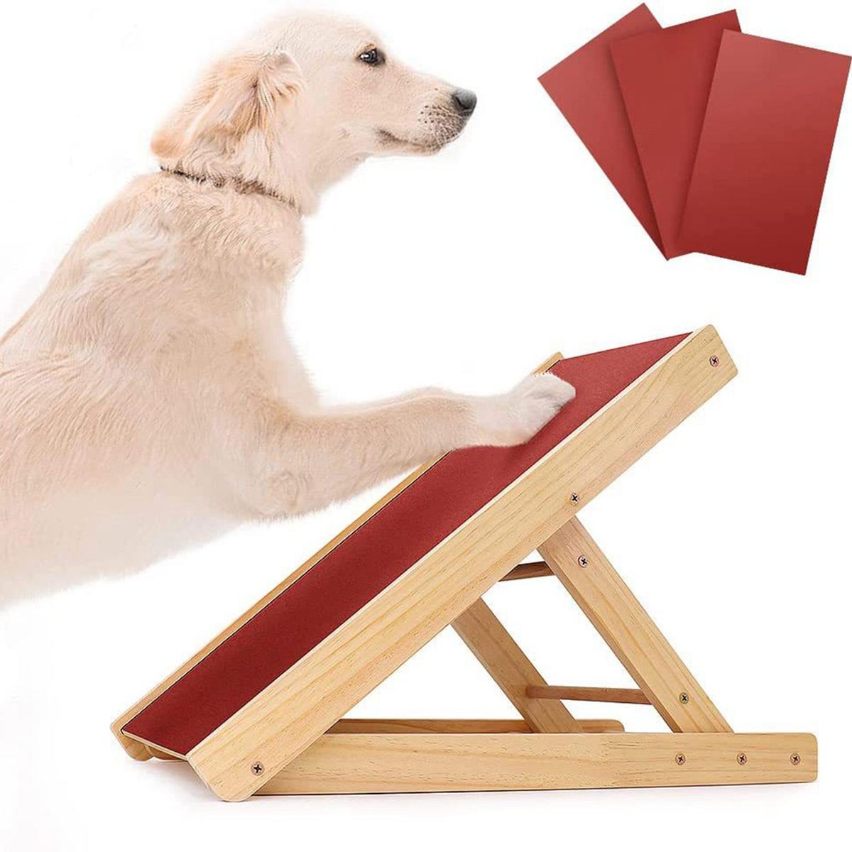 Height Adjustable: The Dog Scratch Pad can be adjusted 3 heights, and used for dogs to their own nails.Material: Folding Dog is made of wood, durable, not easy to break, can provide strong support.Nail : The dog scratch pad is for large and small dogs.Foldable: The portable pet can fold, so you can easily store it under the sofa or bed without taking up too much space.Overall Size: 48cmx38cm/18.90inchx14.96inch.