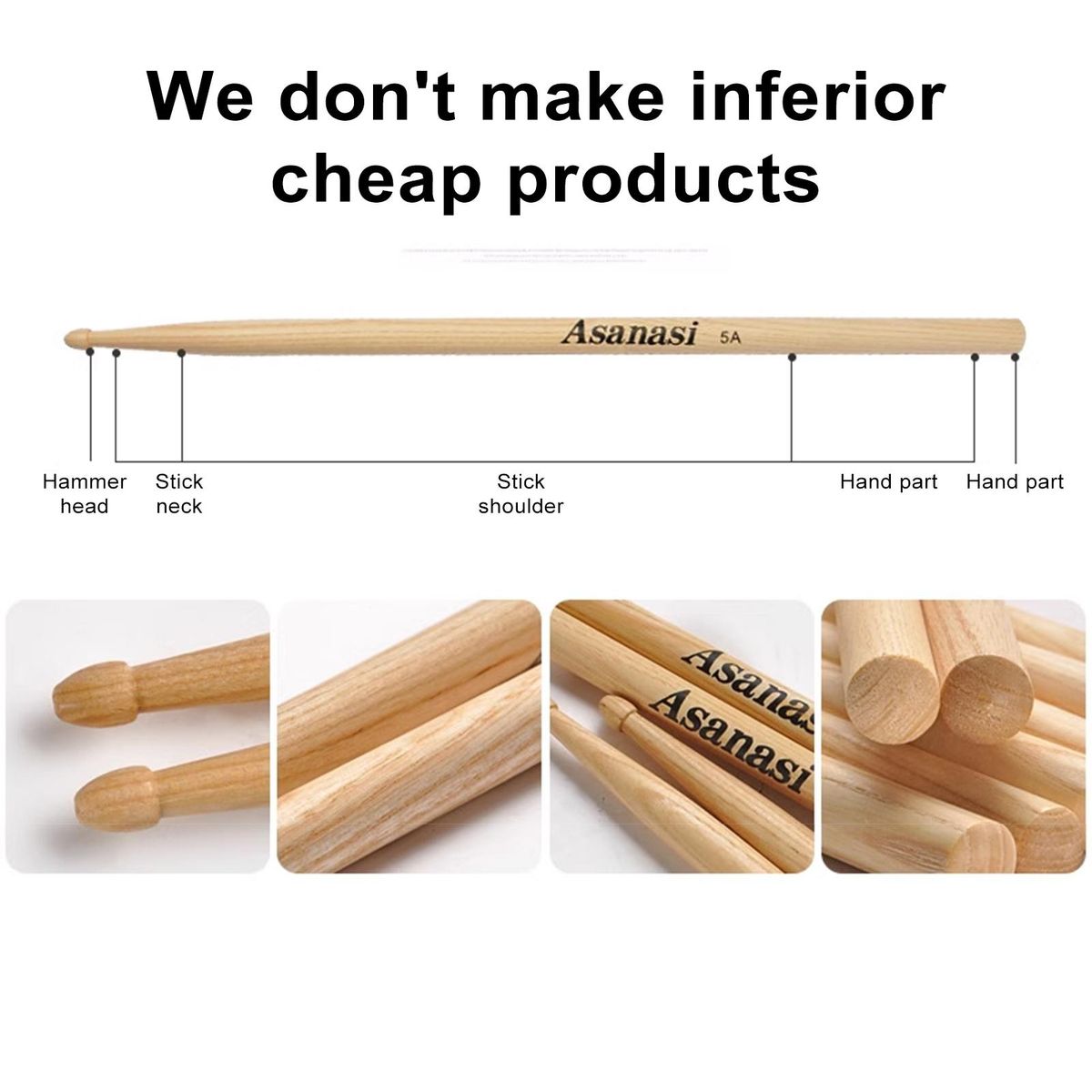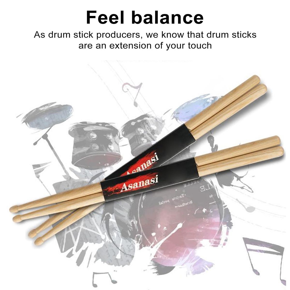 The tail of our drum sticks is round and smooth, providing a comfortable grip with its clear layers of wood texture. made from hickory, a hardwood known for its excellent resilience, these drum sticks offer good vibration absorption. .