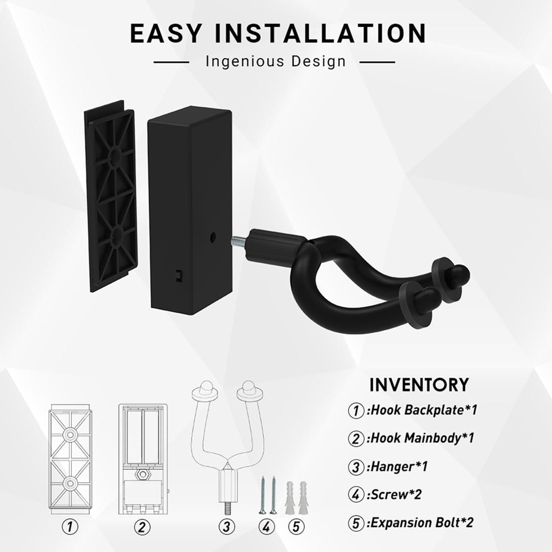 Your Guitar wall mount hanger bracket also comes with a hardware packet that includes everything needed to install the guitar wall hanger. We are certain you will enjoy the guitar wall mount!