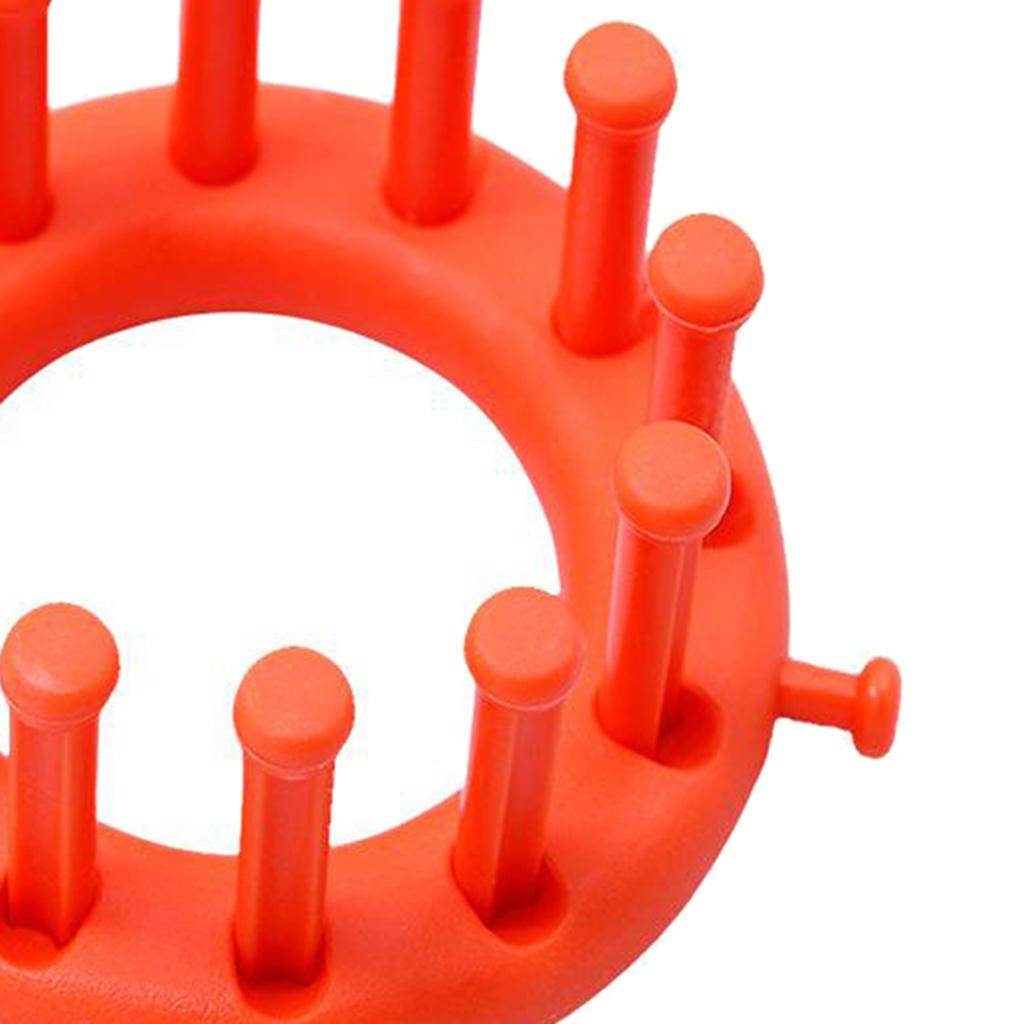 Round Knitting Loom set includes 1x Loom, 1x crochet hook, and 1 piece plastic Made of high quality ABS plastic material with smooth round edges- durable, sturdy and lightweight 9cm/3.54'' mini loom kit, easy to operation, perfect for beginners/learner or pros Irremovable pegs on circular looms won't fall out while looming, it is easy to use and hold for efficient knitting Perfect for making for making mats, scarves, headbands, socks, hat, sweater, leg warmers and etc.