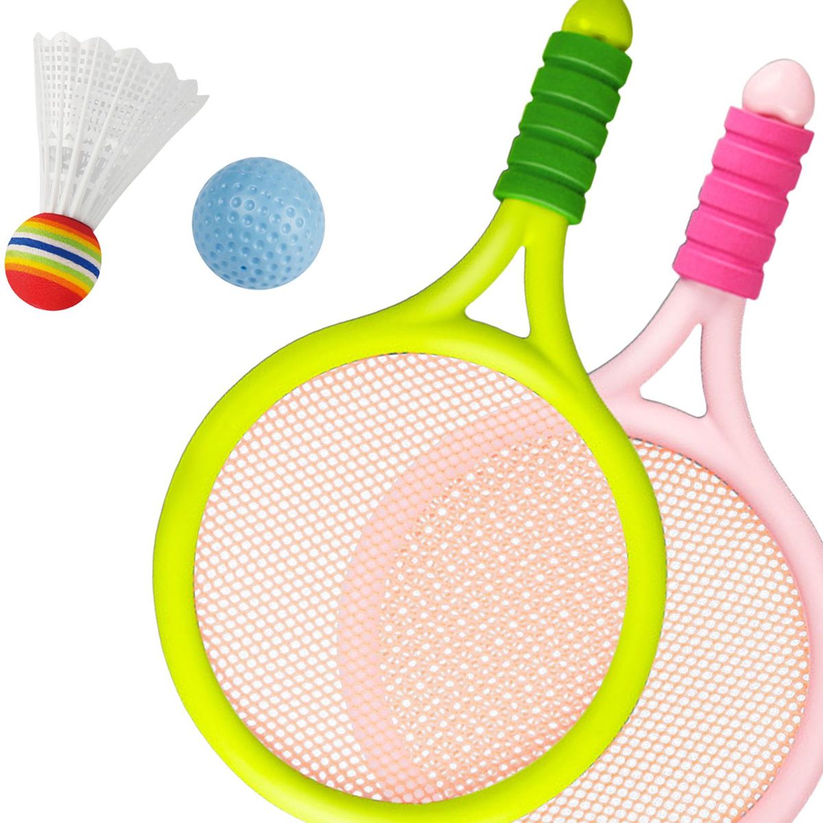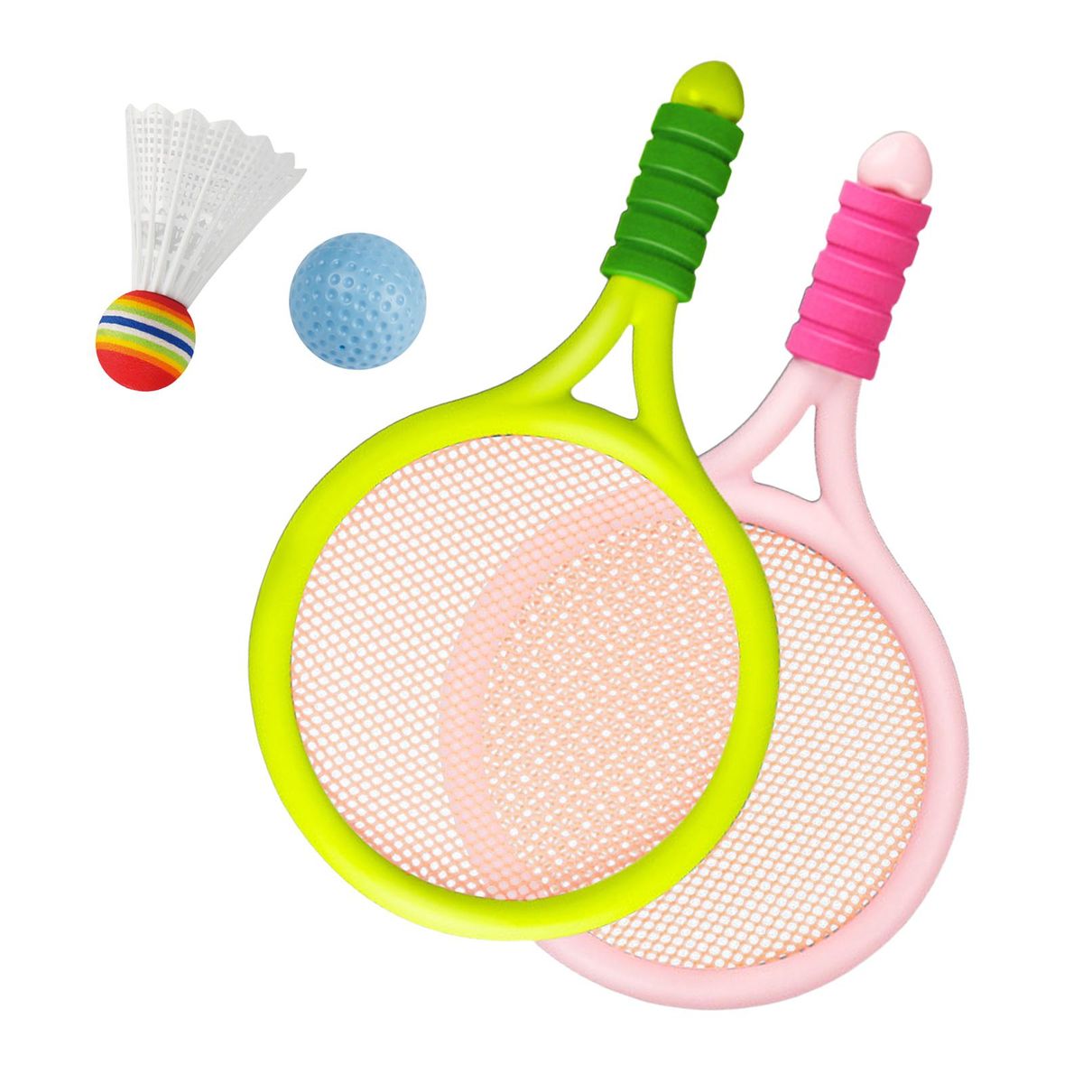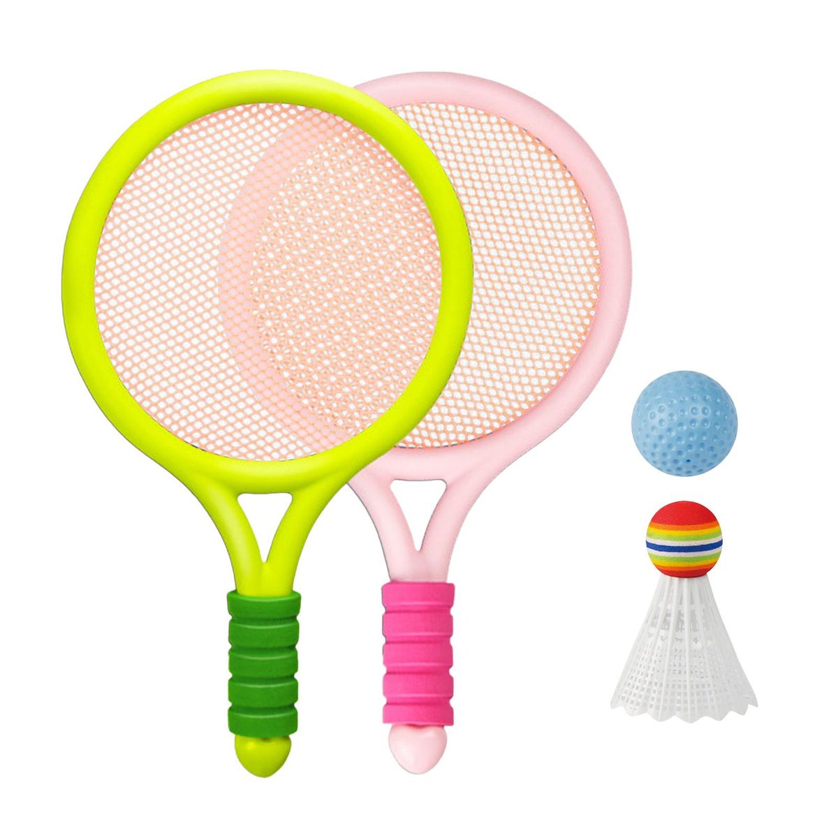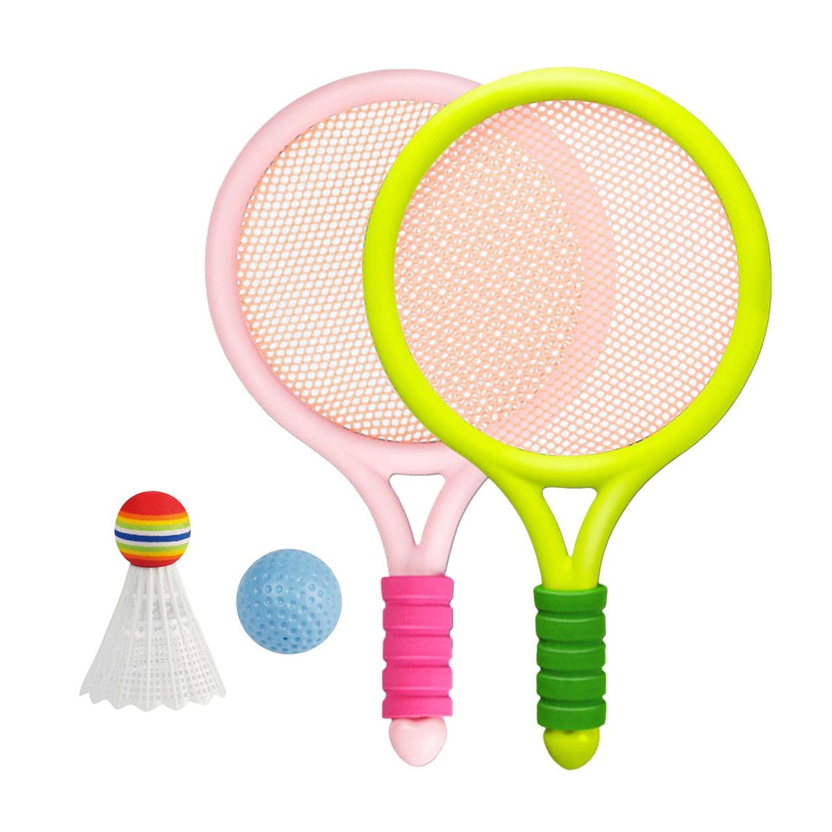 Children Badminton Set: Include a pair of badminton rackets, a tennis ball, and a badminton ball.