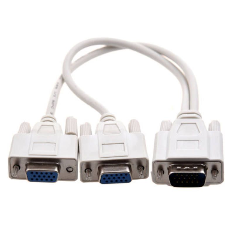 This cable is used to show two same displays by splitting15-pin VGA cable to two ways.
