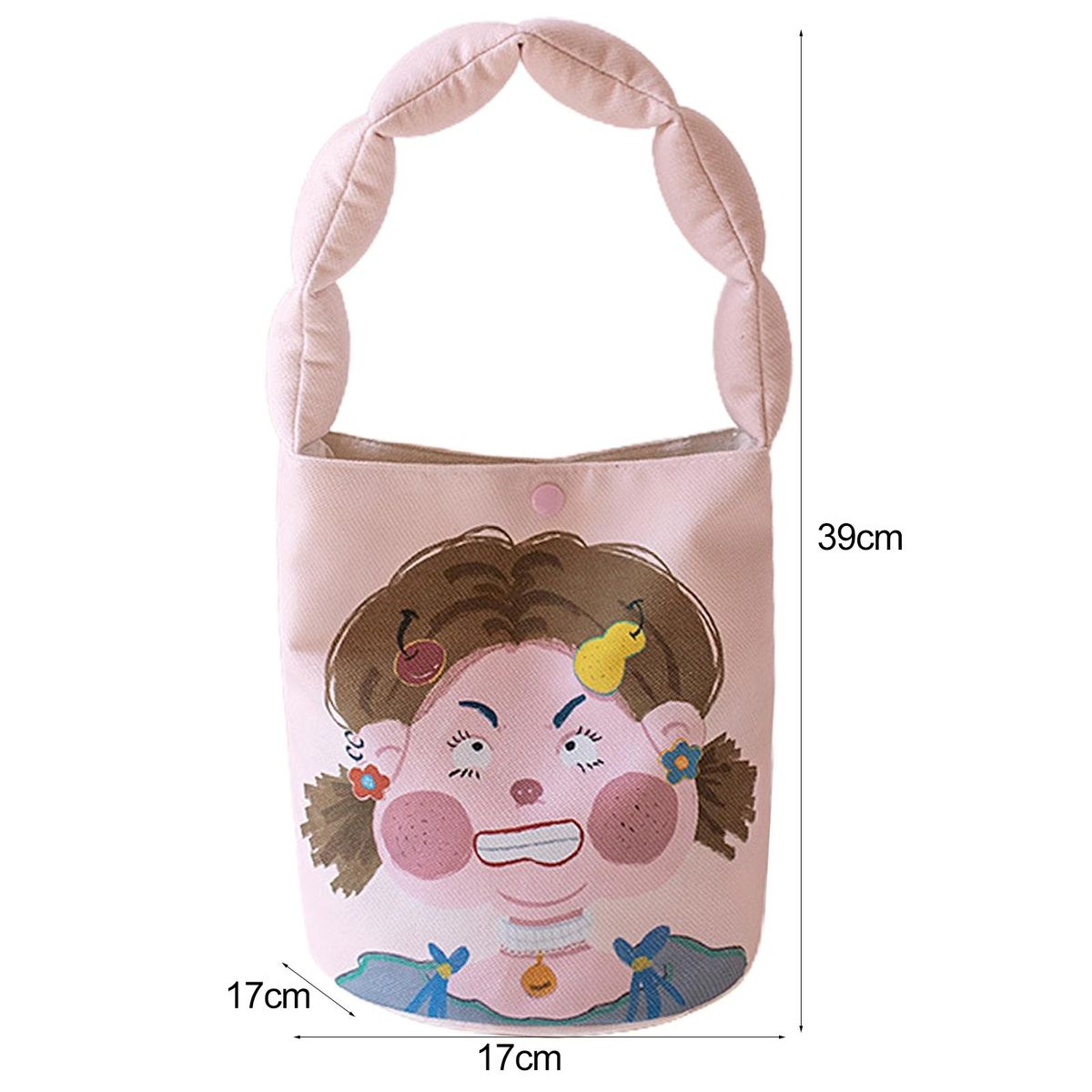 Made from high-quality polyester material, this tote bag is durable and built to last. its fashionable cartoon girl print handbag design adds a trendy touch to your style. the bucket bag with buttons is incredibly easy to open and close while being lightweight and portable.