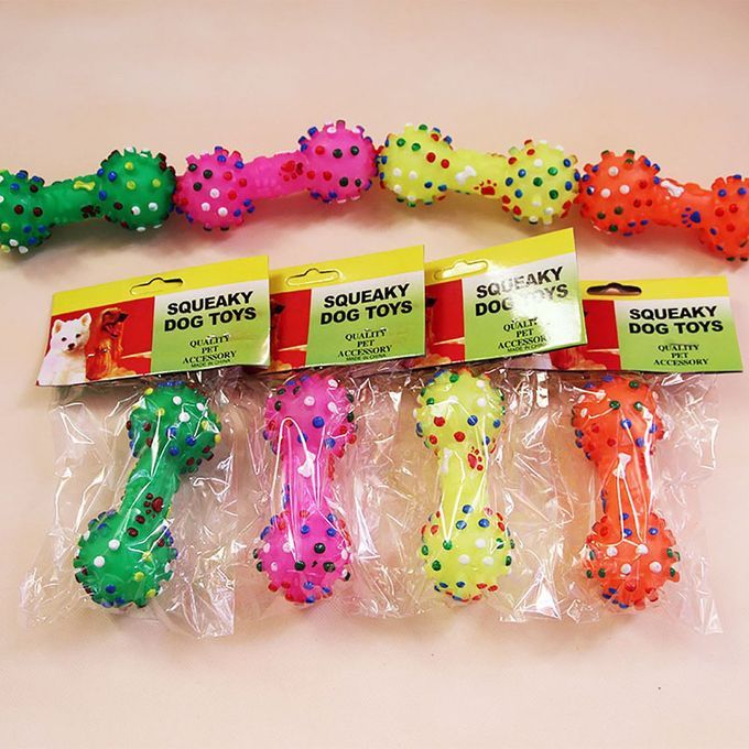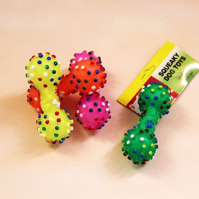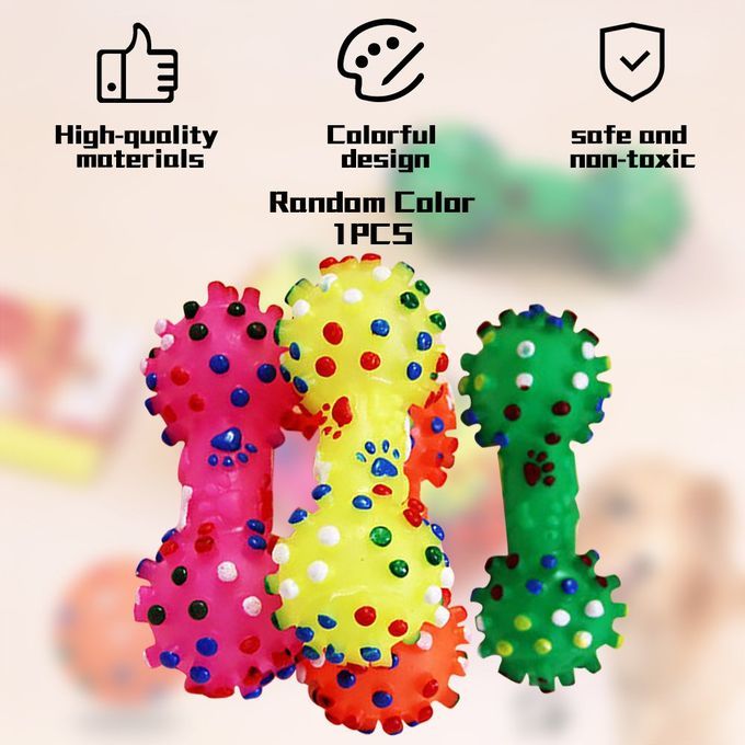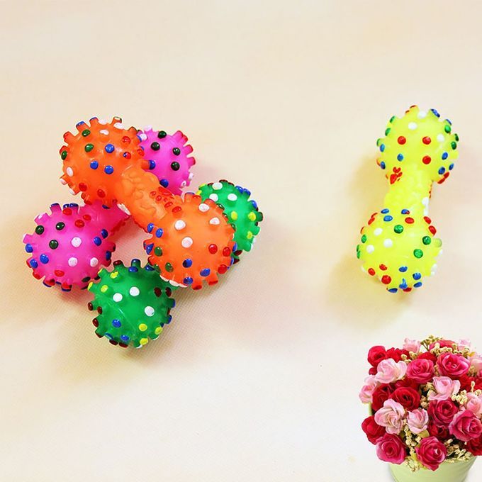 Durable Small Dog Toys Rubber Pets Sound Squeaky Dumbbell Shape Chewing Toy Random