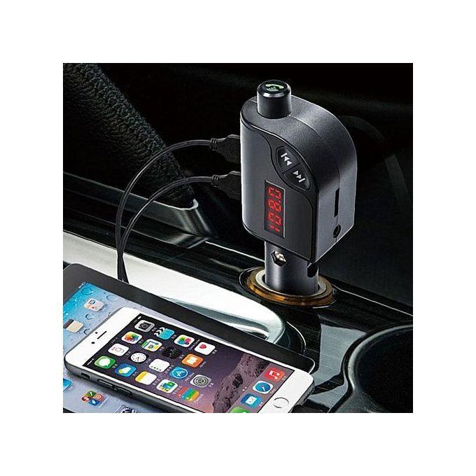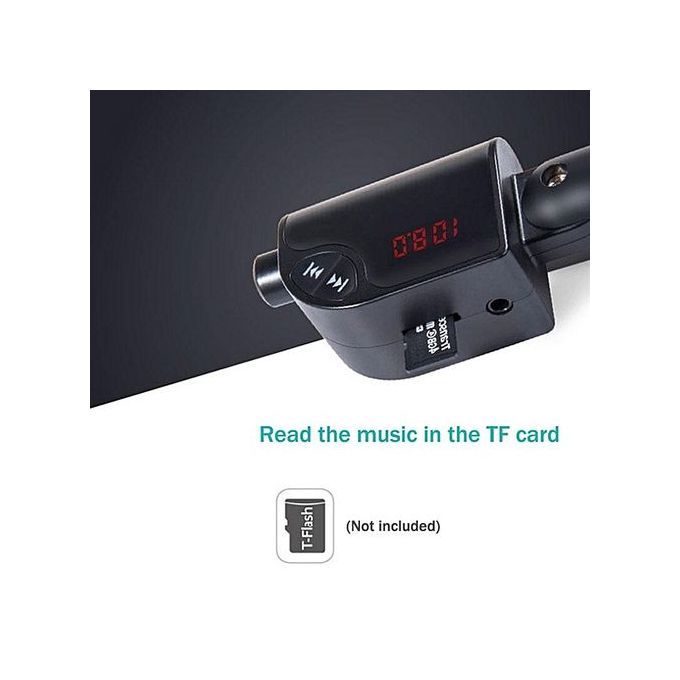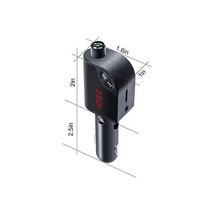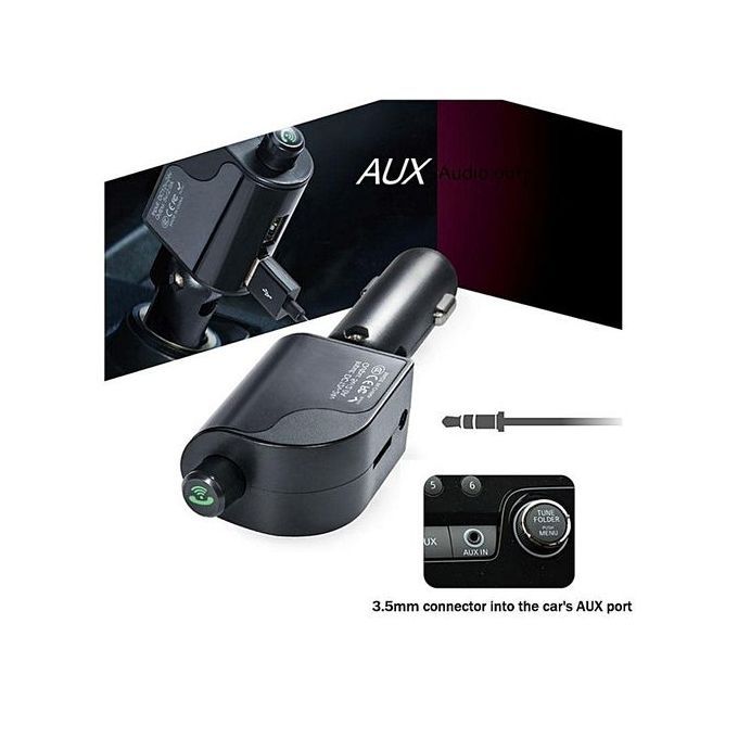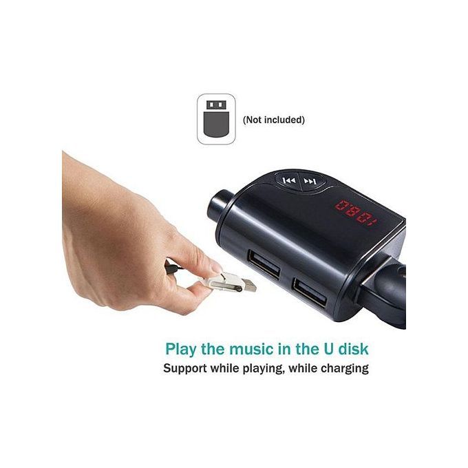 Dual USB car charger offers convenient charging for you and your friends.Smart charging protaction, automatically match suitable current for different devices.High sound quality, enjoy music beeterExquisite workmanship, good handle feelingPhone GPS voice speakerEcho cancellation, clear callCan directly connect with audio line to play musicBuilt-in mic enables you handsfree call, drive safelyCompatible with most Bluetooth enable device and music player APPSpecifications:Color: black, black + silverUSB Output: 5V/ 2.5APower supply: Cigarettee LighterWorking Current: 50-100mA DC12V-24VBit rate: 64-320kbpsFM frequency range: 87.5-108MHzSignal to noise ratio: 85dB (FM:65db)Harmonic distortion: