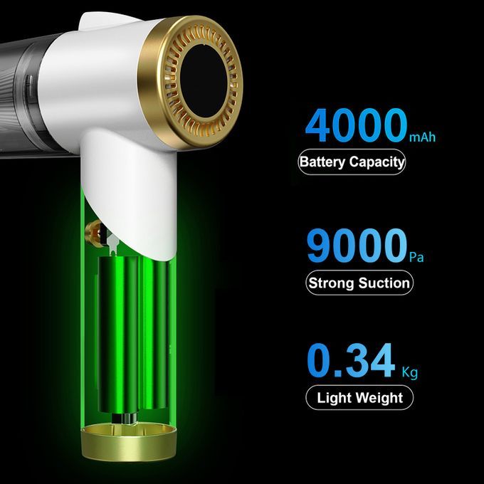 [Strong Suction]This vacuum cleaner has a built-in high-capacity battery and high- motor, with suction up to 9000pa, strong suction, and thorough cleaning.