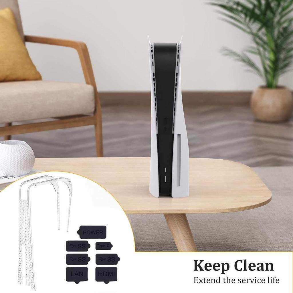 Designed for PS5: Made of silicone, ABS, compatible with PS5 game console equipment, environmentally friendly, wear-resistant, durable, and long-term use. Anti-dust plug can prevent dust from entering the USB and HDM ports of the game console, and prevent the ports from being blocked,Let you enjoy the game without hindrance.Easy to Install: Simple but practical. The flexible material makes it easy to install the PS5 console and provides full body protection. Easy to install and disassemble, easy tocarry.You Will Get: 7pcs Dust Plugs, 1PCS ABS Anti-Dust Cover.Compatible with PS5 digital edition & Utra HD
