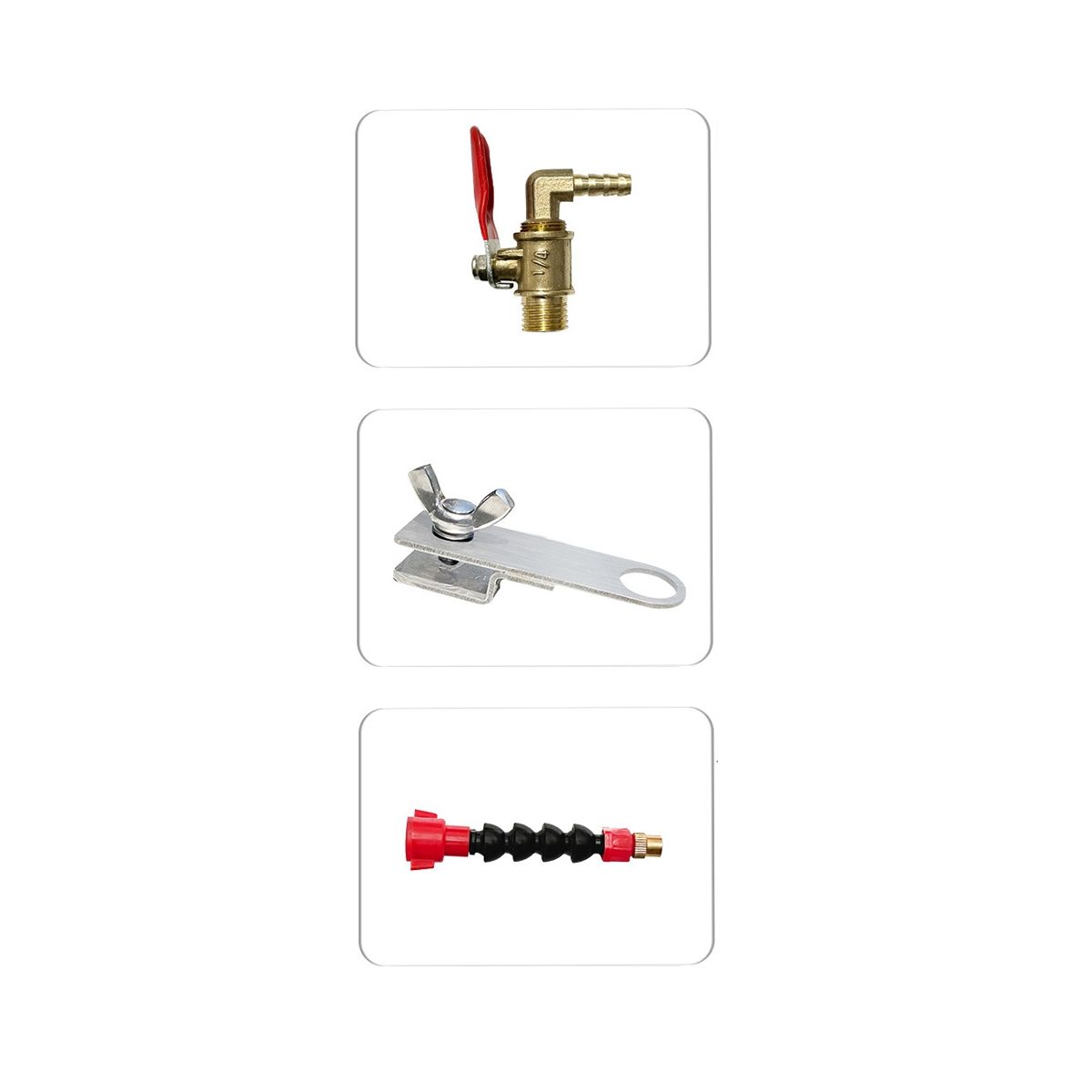 fix the sprayer on the machine with the stainless steel fixing bracket, then put the water pipe through the nut at the tail of the sprayer, insert and tighten it. Then, you can start working without dust blocking your view.