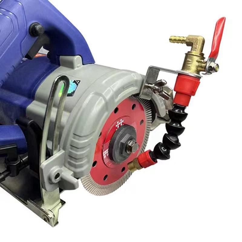 2. fix the sprayer on the machine with the stainless steel fixing bracket, then put the water pipe through the nut at the tail of the sprayer, insert and tighten it. Then, you can start working without dust blocking your view. Size: about 135MM/5.31in