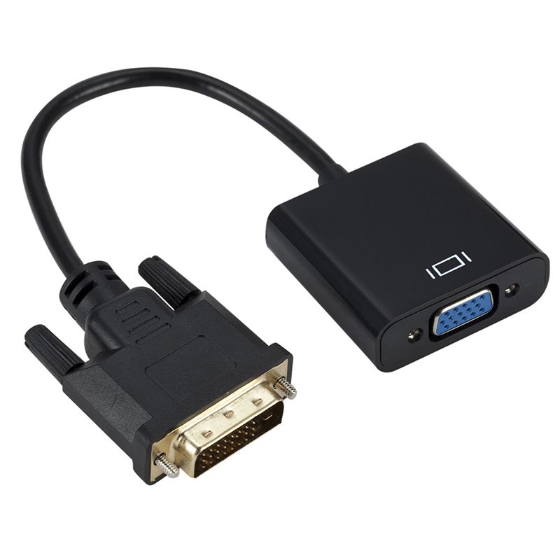 Description: DVI to VGA Adapter,1080p Active DVI-D to VGA Adapter Converter 24+1 Male to Female Supporting 60Hz and 3D for DVI syst to connect to VGA displays Active DVI-D to VGA Converter connects desktop computers and laptops (major brands like Lenovo, Dell, HP, ASUS, etc. ) with DVI-D to VGA displays, supporting HDTV resolution up to 1080p @60Hz and PC graphics resolutions up to 1920 x 1200 @60Hz It is ideal solution for your office, home entertainment display, etc. without upgrading them Plug and Play without installing any drivers Features: Premium Performance:converting digital DVI signals to analog VGA signals; Integrated set improves the compatibility with more VGA displays Quick and Hale-free:DVI-D to VGA setup, 25 pin DVI-D Male to 15 pin VGA Femal + Micro USB charger Port Power Free:No external power supply required on most devices. But for some devices, such as Mac Mini, MacBook Pro with Retina, etc., the connected converter needs more power via an extra USB power cable (not provided) for better compatibility Connectors: Input: DVI-D (24+1 pins) Dual Link Male Output: VGA (15 pins) HD D-Sub Female Specification: PC resolution supported: 800x600, 1024x768, 1280x768, 1280x800, 1280x960, 1280x1024, 1440x900, 1600x1200,1680x1050 @60Hz, 1920x1080 @60Hz, 1920x1200 @60Hz HDTV resolution supported: 480i, 576i, 480p, 576p, 1080i and 1080p @60Hz : Up to 1.65Gbps Compatible Devices:Desktops, laptops and other devices with DVI-D output. Note: Can only convert signal from DVI to VGA. This is not a bi-directional adapter. Audio must be transmitted separately. Viewing content protected video is not supported. Display must support a compatible refresh rate and resolution as the source. Package included :1 x DVI-D to VGA Active Converter