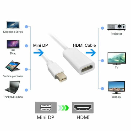 Mini DP DisplayPort to HDMI is Gold-plated connectors are corrosion-resistance, durable and wearable.Better signal performance provided by the adapter makes you enjoy flawless video and audio with no lag.