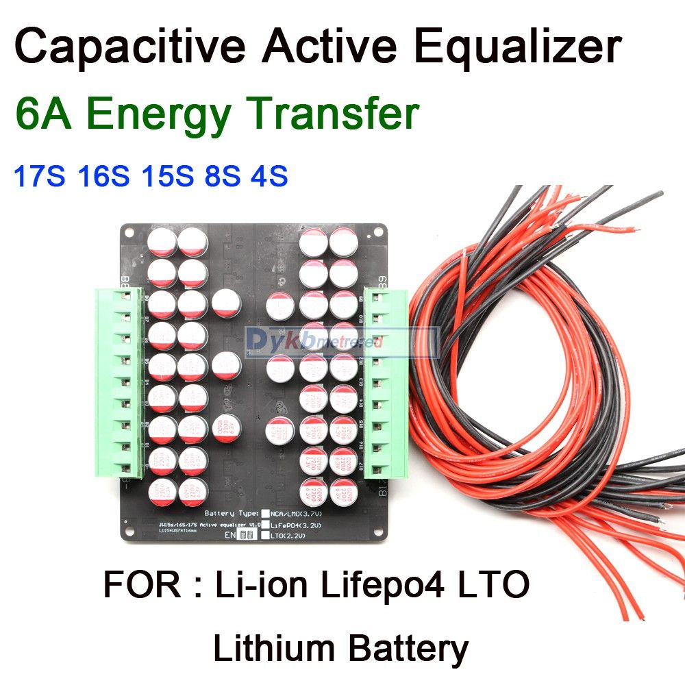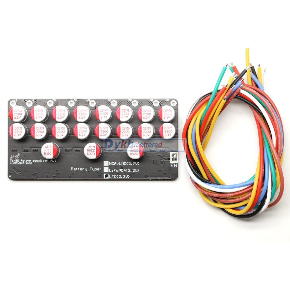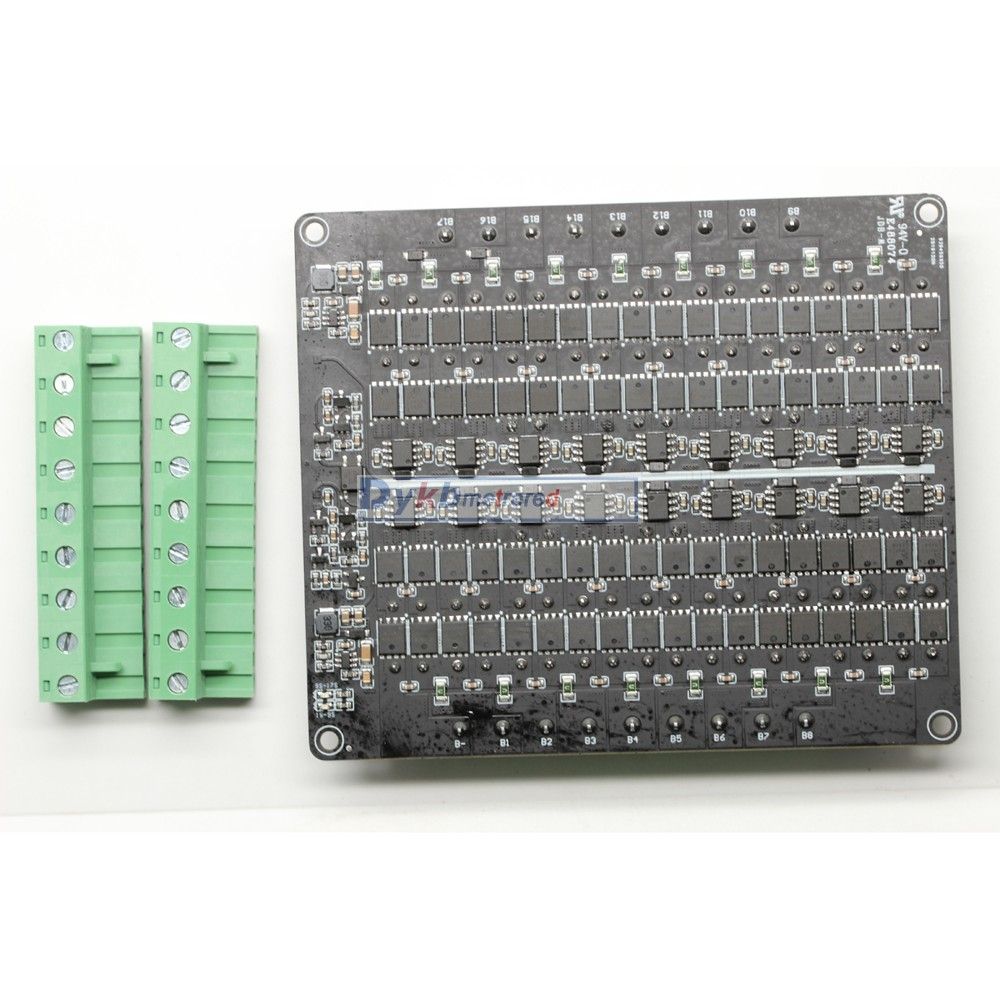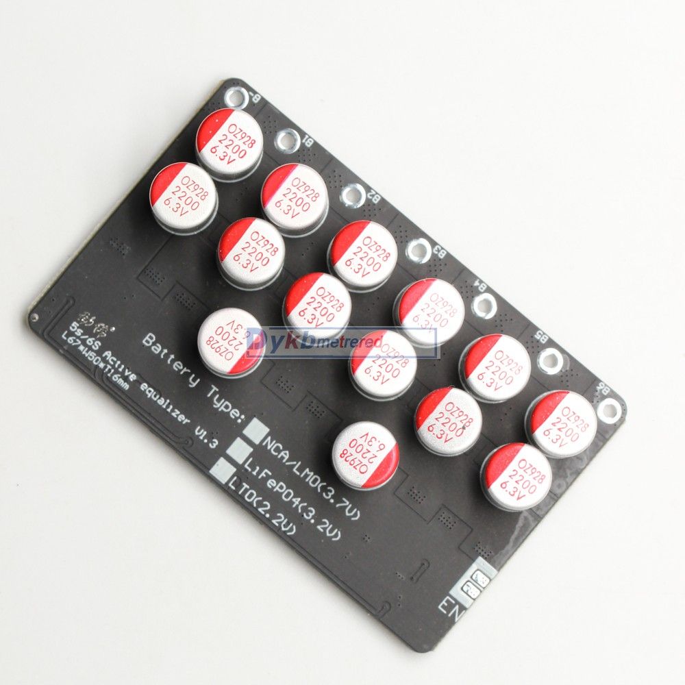 Post Code: 511400 1A 3A 5A 6A Balance Li-ion Lifepo4 LTO Lithium Battery Active Equalizer Balancer Board Energy Transfer BMS 3S 4S 5S 6S 7S 8S 12V Description: Features: Li-ion/Lifepo4 /Lipo version Balance start voltage: 3.0V-4.2V Balance termination voltage: 2.9V (into undervoltage sleep state) Maximum Balance current: The whole group error is 0.1V1A; 0.5V3.5A; 1.0V5.5A (18awg 30CM cable test) 3S quiescent current Full state: (4.2v*3cell) 12.6V 12mA 4S quiescent current Full state: (4.2v*4cell) 16.5V 15mA 7S quiescent current Full power state: (4.2v*7cell) 29.4V 15mA 8S quiescent current Full power state: (4.2v*7cell) 33.6V 14mA Whether external power supply is required: no external power supply is required, and the internal energy transfer of the battery is used to transfer and the entire set batteries pack in balance . Working envment temperature: 0-60 degrees LTO version Balance start voltage: 2.0V-2.8V Balance termination voltage: 1.9V (into undervoltage sleep state) Maximum Balance current: The whole group error is 0.1V1A; 0.5V3.5A; 1.0V5.5A (18awg 30CM cable test) 5S LTO quiescent current Full state: 2.8v*5cell) 14V 12mA 6S LTO quiescent current Full state: 2.8v*6cell) 16.8V 15mA Whether external power supply is required: no external power supply is required, and the internal energy transfer of the battery is used to transfer and the entire set batteries pack in balance . Working envment temperature: 0-60 degrees