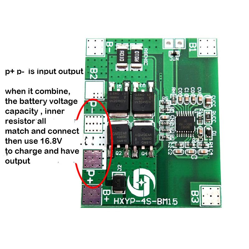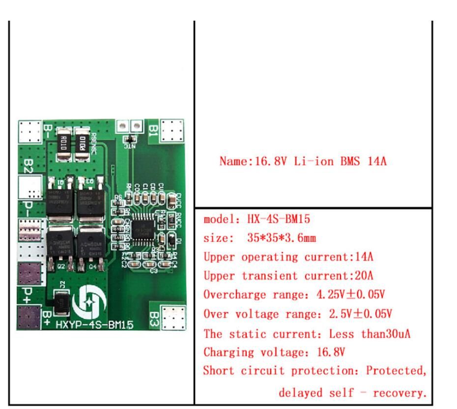 1X Dykbcells 4S 14A limit 20A BMS 12.8V 12V LiFePo4 /14.8V 16.8V 18650 Li-ion lithium Battery Protection Board 4 Cell PackS