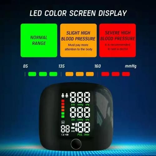 Dynamic LCD Touch Screen Wrist Blood Pressure MonitorDynamic LCD touch screen wrist type with clear and readable display Irregular heartbeat alert WHO warning message function Overpressure protection function.Intelligent pre-pressure, real-time voice announcement, support for charging useAccurate blood pressure measurement using oscillometric sphygmomanometer
