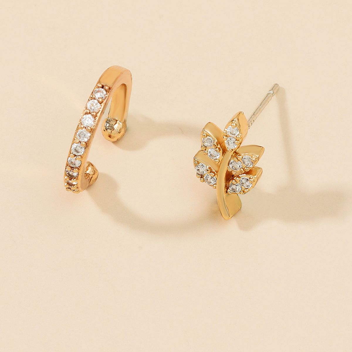 DZ-512 Small Drilling Lug Clip Geometric Zircon Earrings