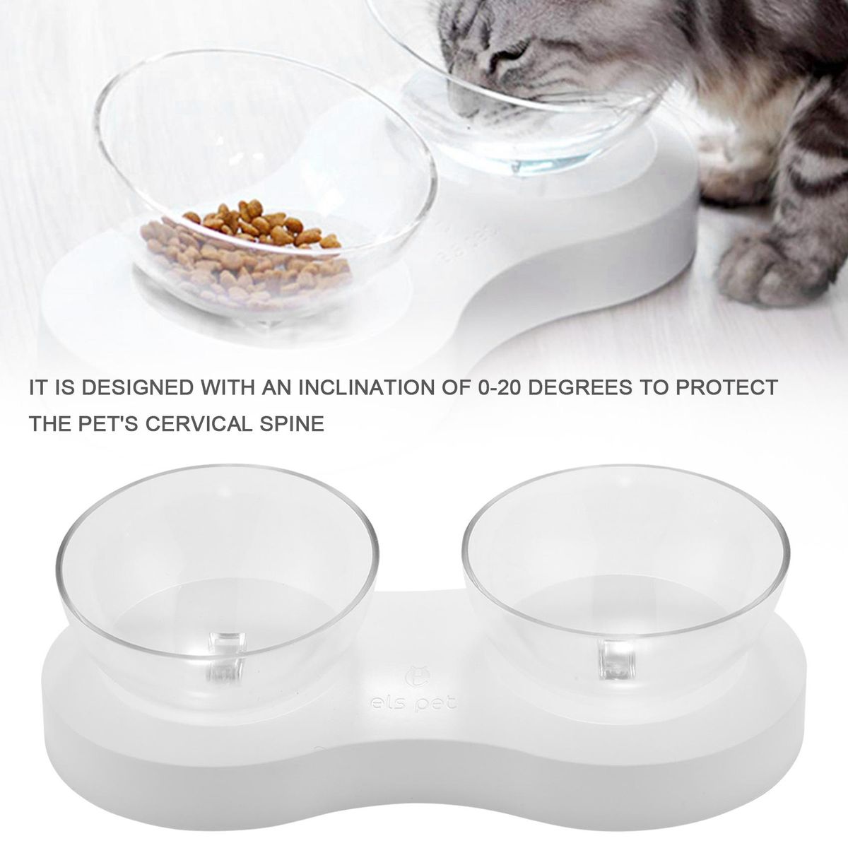 0-20 DEGREES ADJUSTABLE INGENIOUS DESIGN :This cat food stand with tilted 0-20 degree design to protect the pet's cervical spine, which helps to release the stress of your pets neck and helps them more comfortable to enjoy the food.