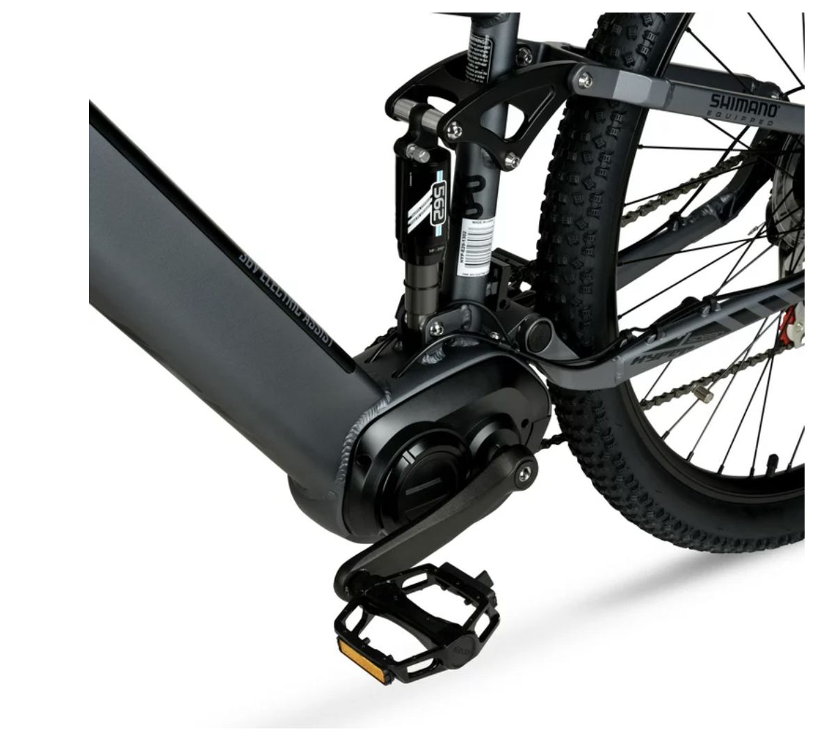 Hyper E-Ride Electric Bike, Mid-Drive MTB Dual-Suspension, 36 Volt Battery, 20+ mile Range, Matte Grey