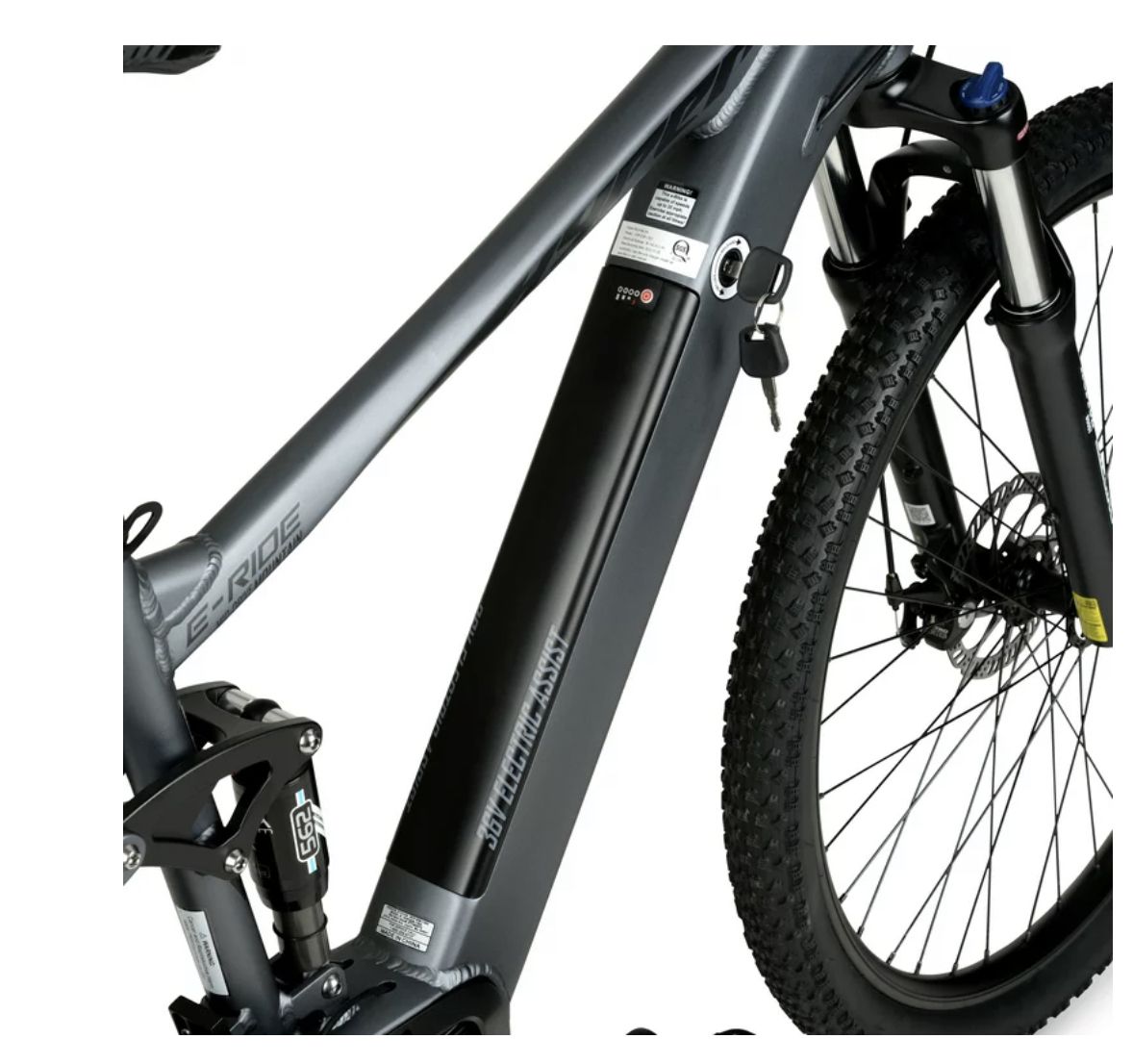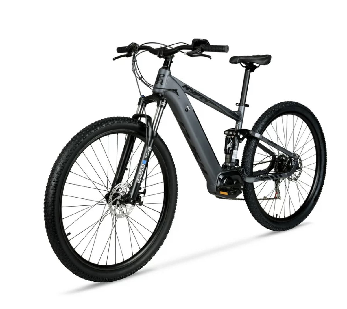 - Hyper E-Ride Unisex Electric Bike, 29 inch Wheels, Men's MID DRIVE MTB Dual-Suspension, 36 Volt, 20+ Mile Range, Matte Grey