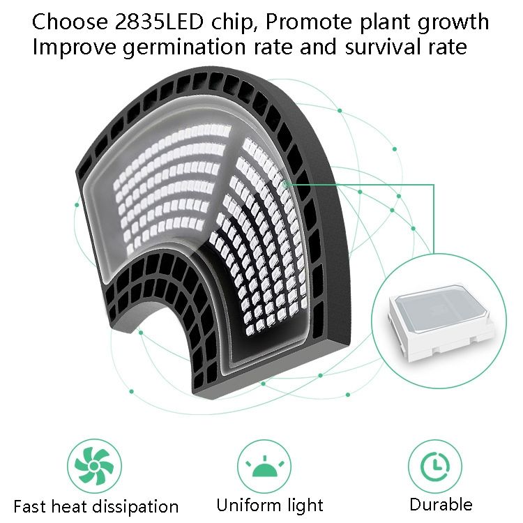 5. Select 2835 LED chip to promote plant growth, increase germination rate and survival rate, fast heat dissipation, uniform light, and durable