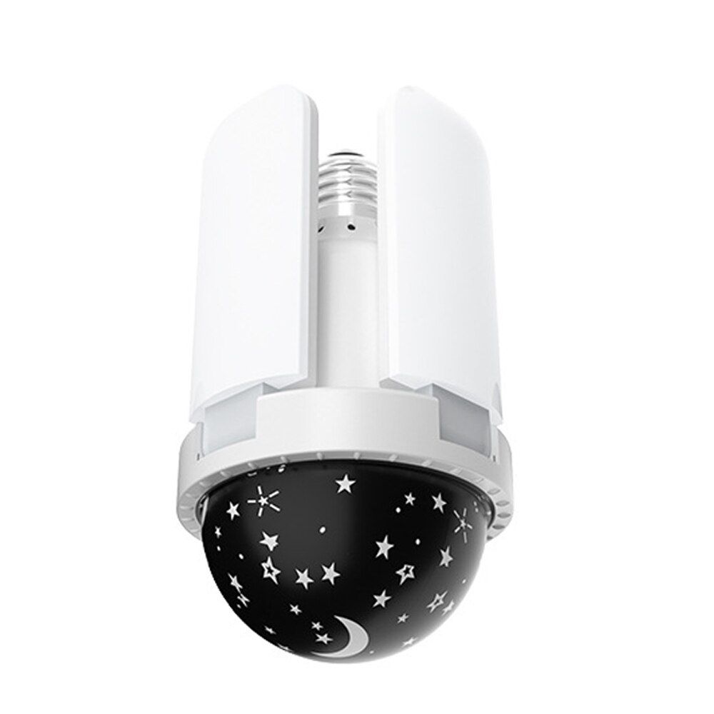 1X E27 4-Leaves Bluetooth Music Light Foldable LED Music Fan Projector Lamp with Remote Colorful Light Bulb Smart Speaker Fan Lamp