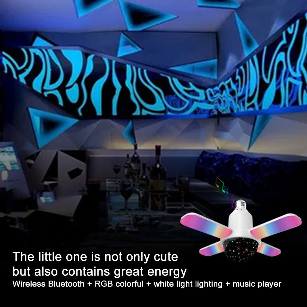 E27 4-Leaves Bluetooth Music Light Foldable LED Music Fan Projector Lamp with Remote Colorful Light Bulb Smart Speaker Fan Lamp