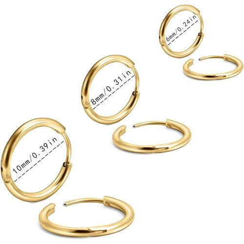 - Set of 3 pairs,3 size Unisex very small endless sleeper hoops. gold plating.Fashion jewelry gift for women,men,girl and boy of all ages