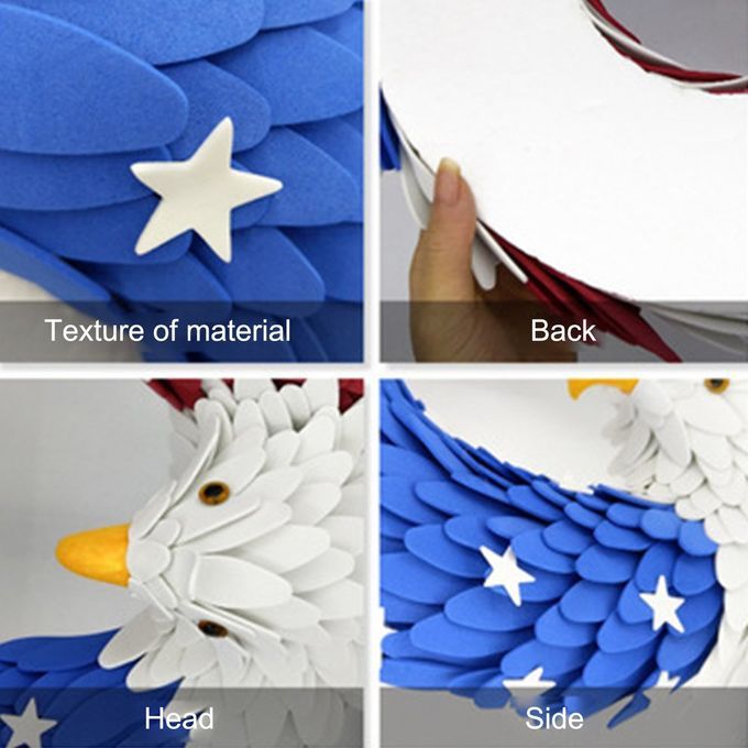 Features: 1. Material: high-qu ty soft plasti substrate, omfortable to handle, an withstand wind and rain. 2. Ba k: Polystyrene foam skeleton, light weight, double-sided tape, sti ky and easy to use, onvenient and fast. 3. Head: The eagle head is exquisite in workmanship, lifelike, ute and vivid, and the feathers are olorful and full of vigor.