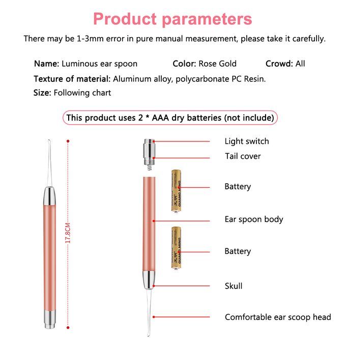 Features:With LED lights, white light, and a magnifying glass, you can see the small parts of your ears more clearly and clean them up.