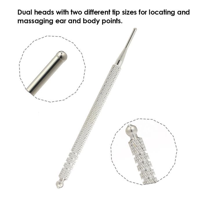 Dual heads with two different tip sizes for locating and massaging ear and body points.