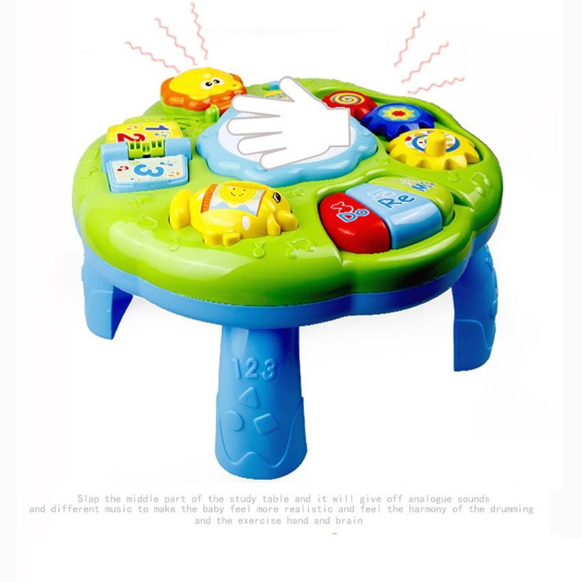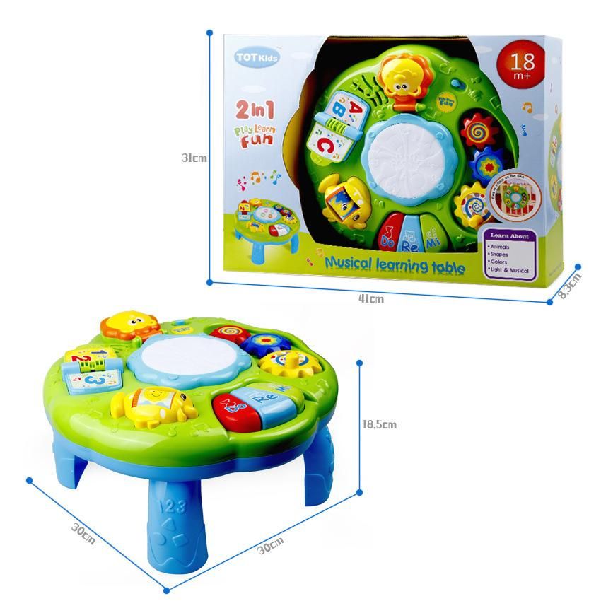 Detailed Information About The Product:Lights up and allows for free play,classic melodies,and introduces baby to colors.The learning table also have DO,RE,MI,which is a simple start and simple experience of music.Colorful image and beautiful voice can draw kids'attention to learning.Explore sounds,songs and instruments such as the piano.