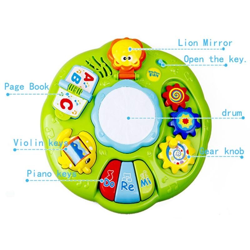 Made from safe and non toxic ABS plastic.Great gift idea for any occasion!the baby can tap the drum in the middle of the table to feel the lively rhythm and sound effect.