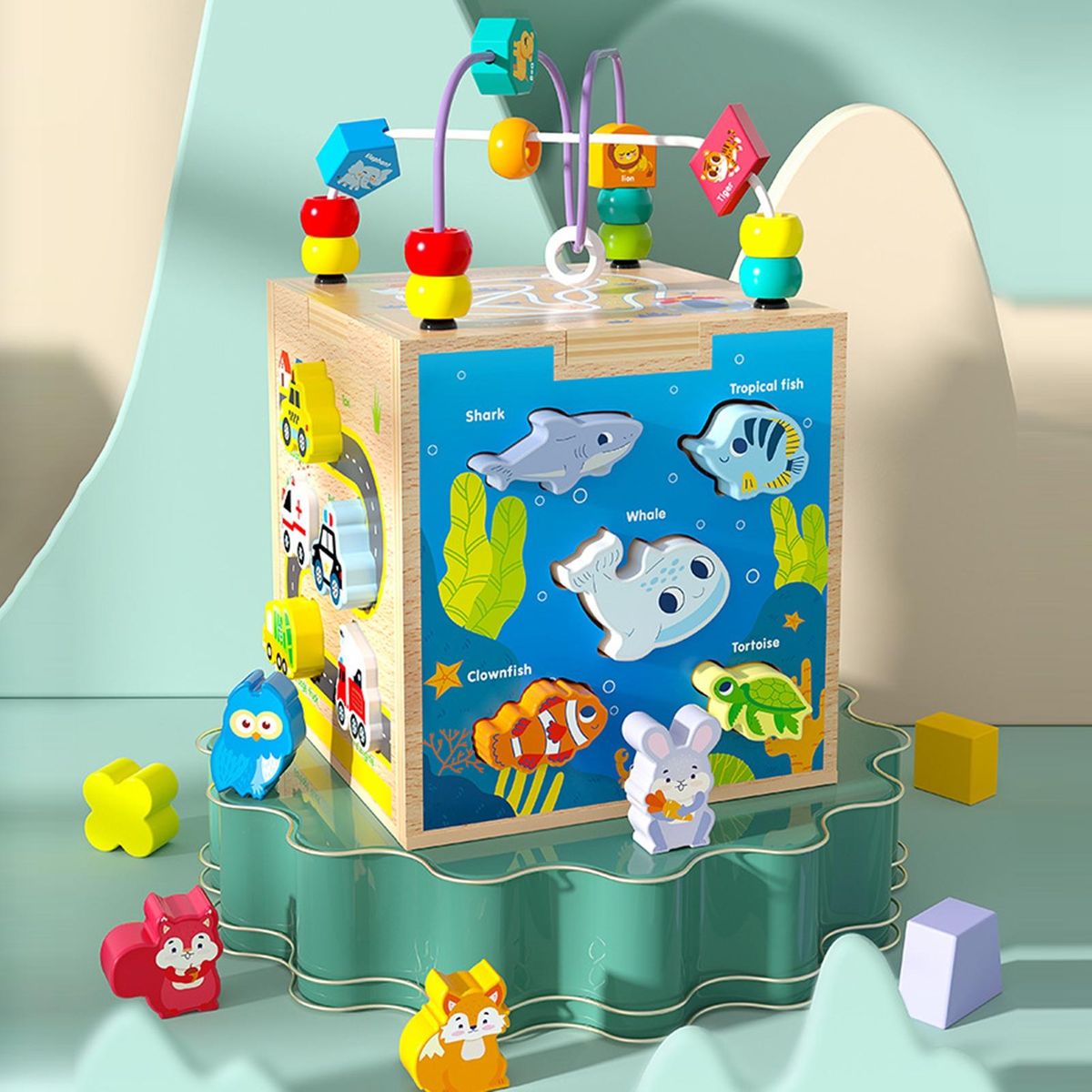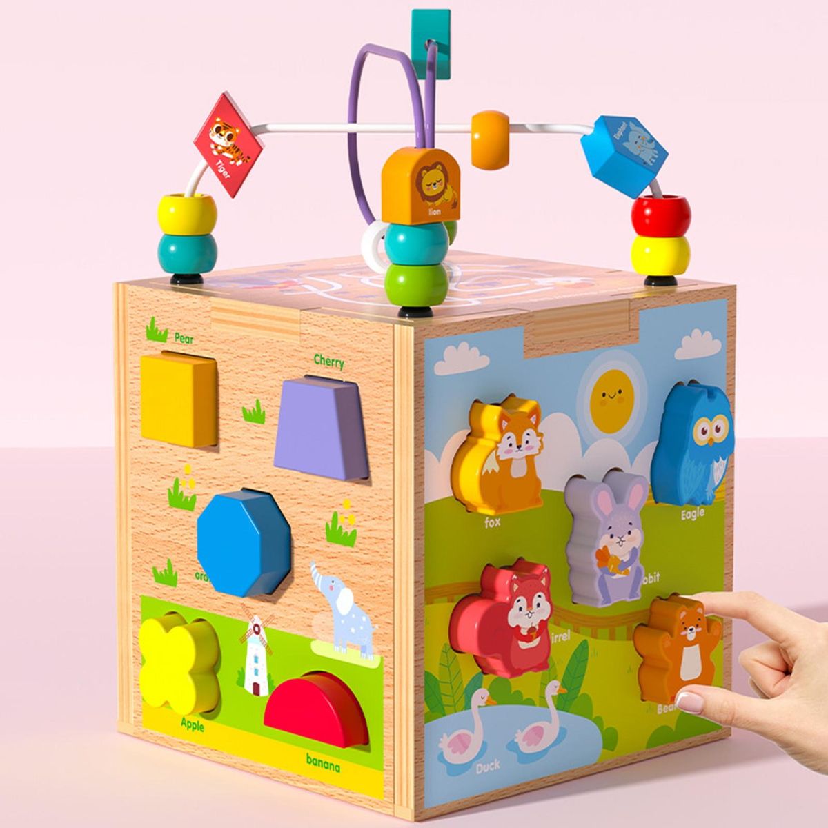To enhance parent-child interaction and develop your baby's hand-eye coordination, this educational box supports shape matching.