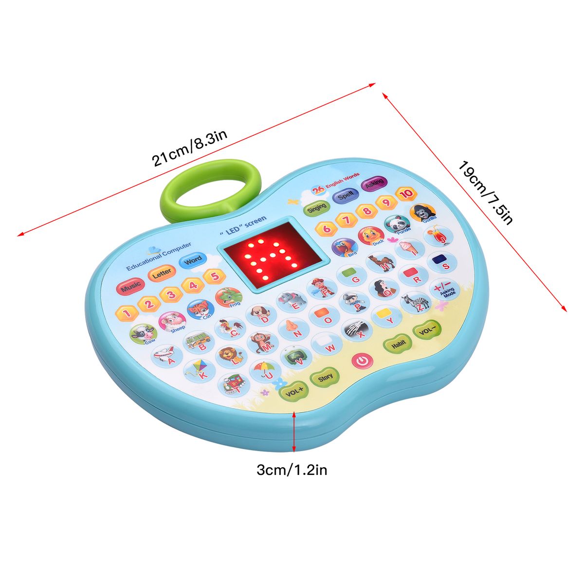 - Multi-function modes: word mode, music mode, letter mode, singing mode, spelling mode, asking mode, animal mode, story mode and habit mode.