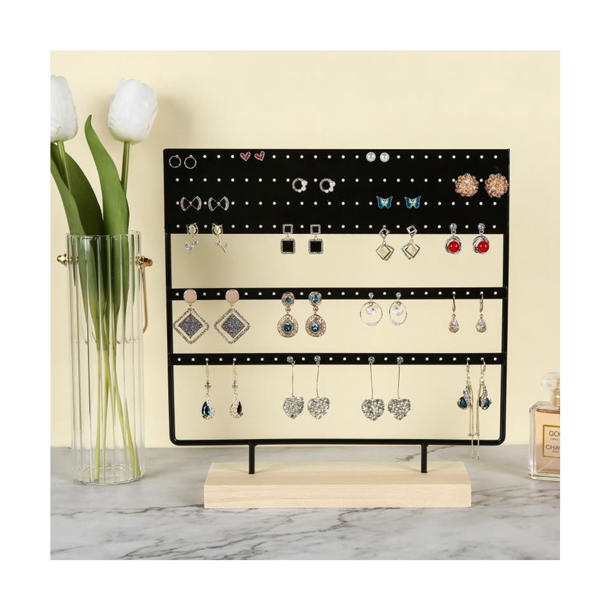 Simple and ElegantThis earring holder keeps your jewelry displayed making it easier and faster to see what you have making it easy to the perfect decoration day beautiful earring holder organizer keeps your tabletop and perfect perfect decoration and retail stores